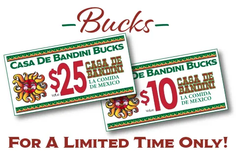 Buy $50 in Casa Guadalajara gift cards and score $10 in Guadalajara bucks! Buy $100 in gift cards and snag $25 in Guadalajara bucks!